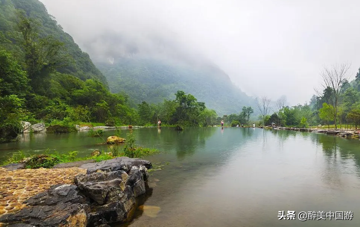 鸟瞰景区,河道两岸五老峰与观音岩鼎足而立,石笋岩犹如活灵活现的纱帽一般呈现在眼前,令人瞠目结舌。尤其是洞潭峡瀑与槽潭雄潭形成一幅相辅相成的绝美景观,只有置身其中,才能真正感受到它奇特的魅力。尤其是猴王远眺和巨象迎宾,以及仙鲤朝天,栩栩如生,巧夺天工,双仙下凡如此状物拟人,惟妙惟肖,纱帽岩更是拥有异曲同工之效,也许天下绝境和宇宙之谜才能够在这里得以体现,令人赞口不绝,回味无穷,无不感叹大自然的鬼斧神工。除此之外,在中洋与下洋之间,有一条近百米长的天然滑道,号称天然冲浪的游泳池,即使赤身游玩,也不会伤到肌肤,而且河床色彩斑斓,水蚀波痕,体验感绝佳。