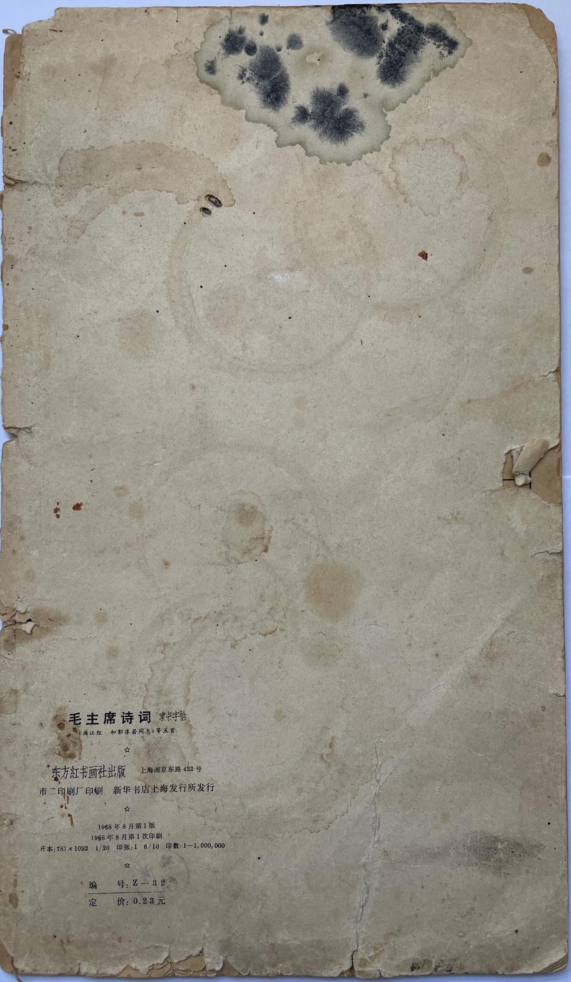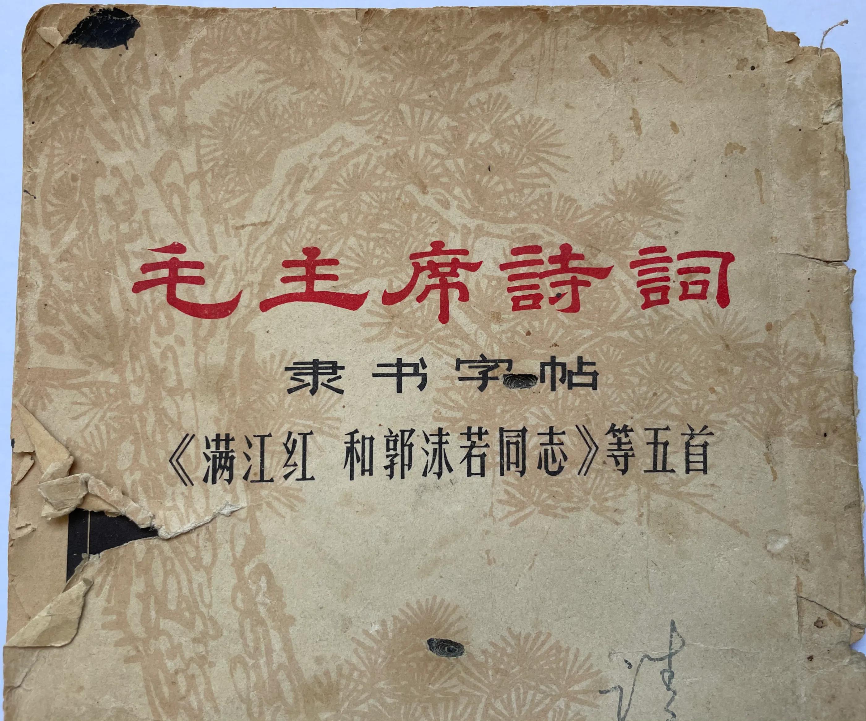 下面这本泛黄的隶书字帖《毛主席诗词》已经有53年了,是由东方红书画出版社于1968年8月出版的,主席爷爷伟大的一生留下很多诗词,我们一起来学习的吧。