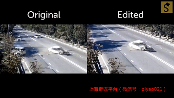 左图原视频中马路对面的车辆,在右图中不复存在。