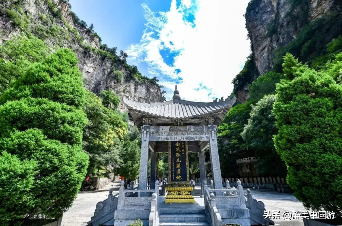 步入景区,能够感受到浓厚的赵氏孤儿文化底蕴,身临其境,亲身体会着曾被历代朝廷所赐封过的藏山祠,虔诚膜拜被称为万岁朝廷香火院的藏山神庙,怀着一颗对历史的敬畏之心,感受着当年程婴藏匿并抚养赵氏孤儿的圣地,游走在依崖而建的庙宇中,穿越文子祠与寝宫,品味梳洗楼与八义祠,感悟启忠祠与报恩祠,在一个个气势壮观的建筑群中,来到令人敬佩万分又感慨万千的藏孤洞,脑海中不由自主地回旋出那段令人难以忘怀的历史。相传在春秋时期,因晋国大夫赵朔惨遭晋国公迫害,弥留之际,将遗腹孤儿托付给门客程婴,后因遭到追杀,迫在眉睫,无奈之举,程婴做出了艰难的选择,牺牲了自己的孩子,带着赵氏孤儿潜入盂山藏匿十五年之久,藏山也因此而得名。