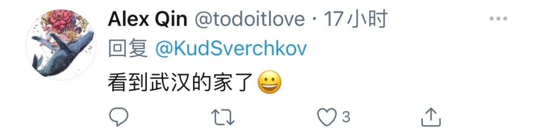 在推文的评论区,有中文、英文、俄文等多国语言留言。有网友表示“看到武汉的家了”“谢谢你 俄罗斯朋友”。